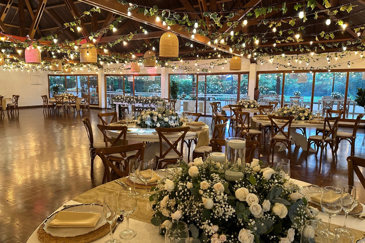 La Casona es un espacio maravilloso para hacer tu boda campestre. Este es un salón de fiestas con hermosos jardines y una espectacular terraza que se integra con el espacio interior. Tiene capacidad para 450 personas. Su gran atractivo es la fusión de sus ventanales de piso a techo con la belleza de una exuberante vegetación compuesta por árboles nativos y unos jardines de ensueño. La terraza permite diversificar el evento y le da una capacidad extra de 150 personas.